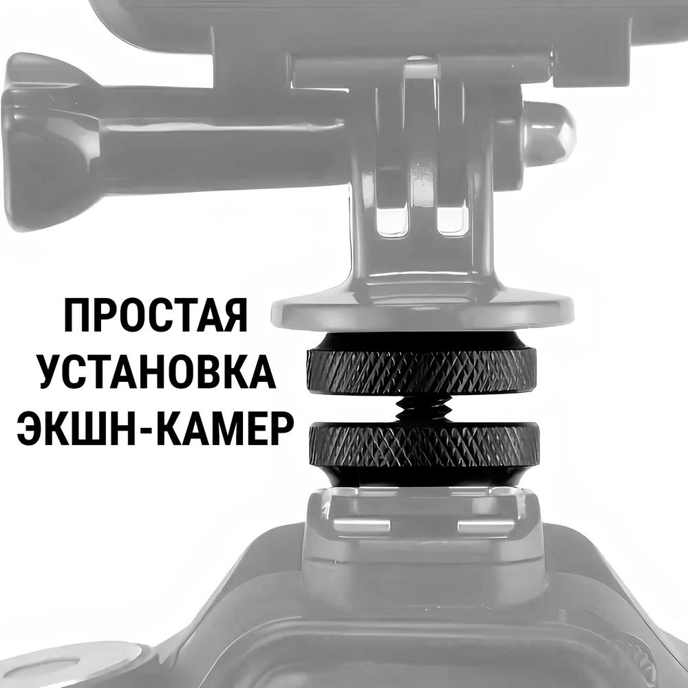 - Две металлические зажимные гайки обеспечивают точную подстройку фиксации, минимизируют люфт и позволяют безопасно закрепить аксессуары любой конфигурации.