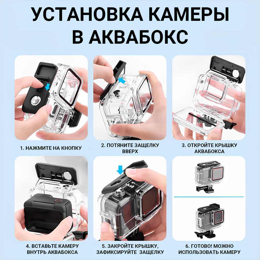 - Простая установка камеры внутрь аквабокса благодаря продуманной конструкции.