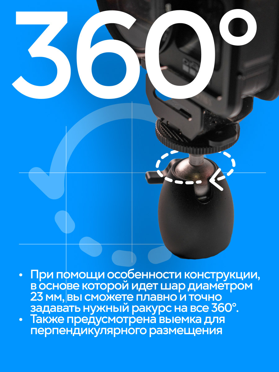 Zarrumi S17 фиксирует любое оборудование с гнездом 1/4" на штативах, моноподах, стойках и т.д.
