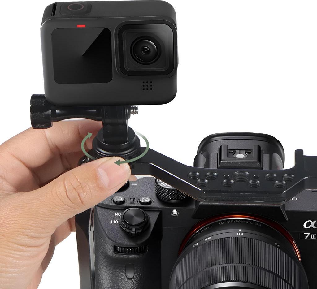 - С помощью Zarrumi HSM можно крепить экшен-камеру к фото- или видеокамерам, а также ручкам, клеткам, лампам, стабилизаторам и другим аксессуарам, оснащенным креплением "холодный башмак" и резьбой 1/4".