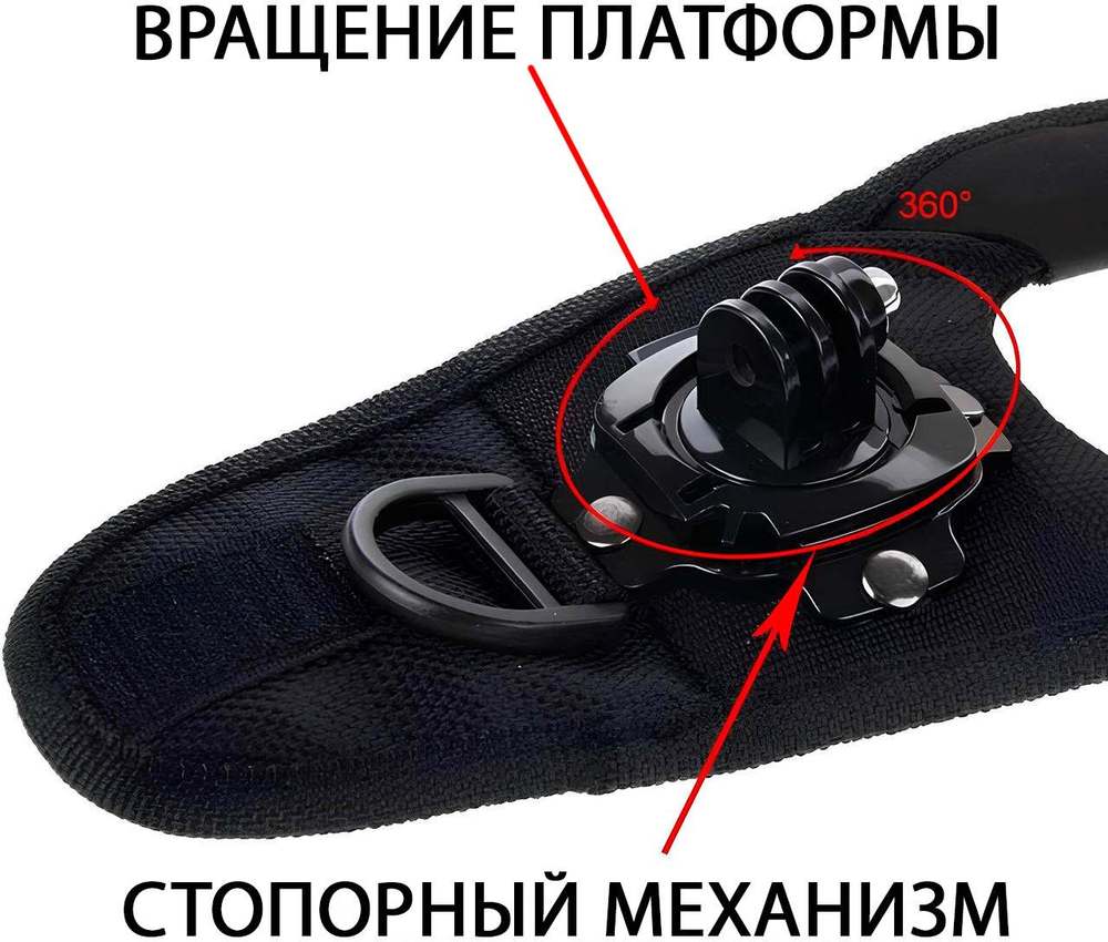 - Комфорт при использовании — легкая и гибкая конструкция не ограничивает движения, а поворотная платформа для камеры с фиксацией направления съемки позволяет фиксировать ракурс.