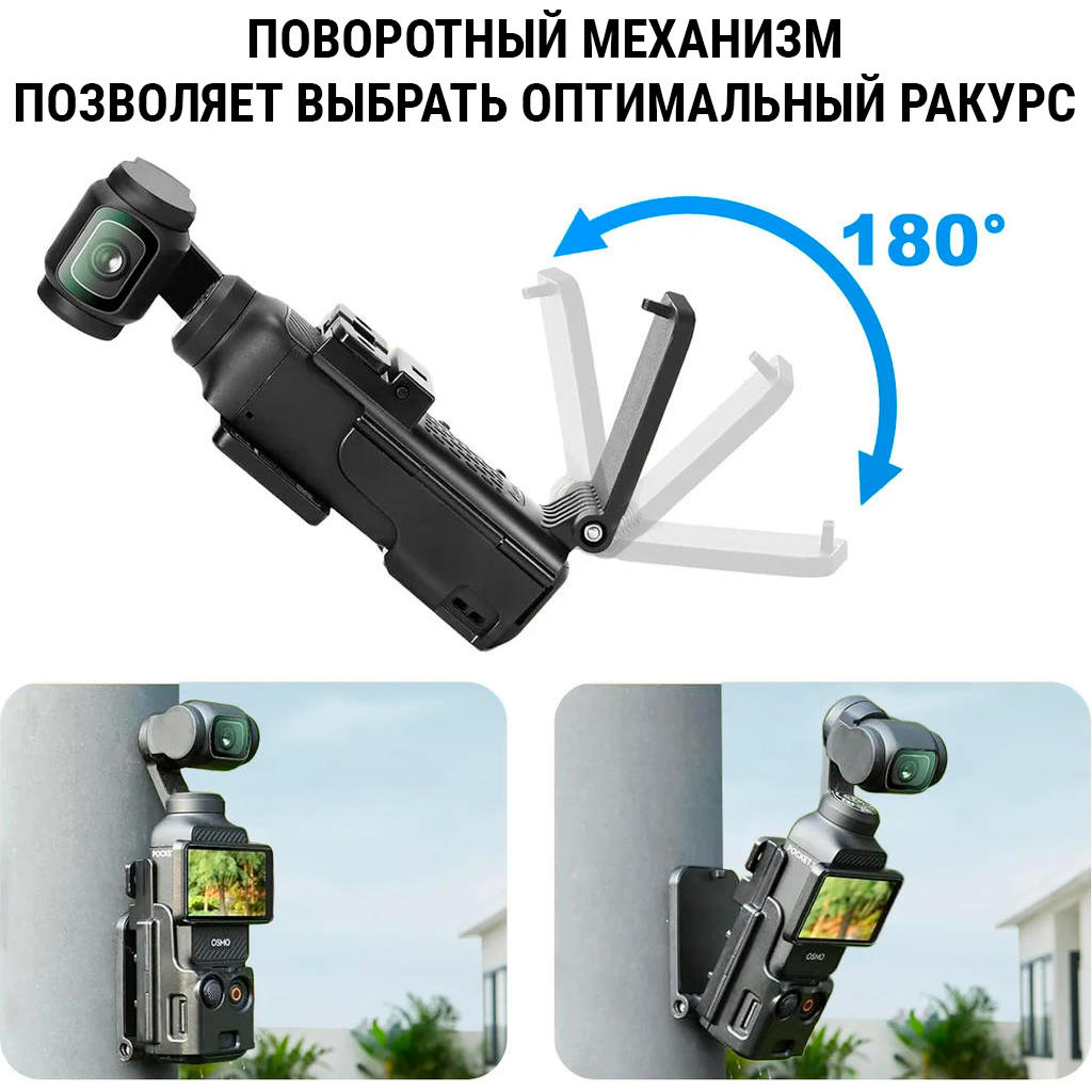 Поворотный механизм крепления позволяет точно регулировать наклон, поворот и направление объективa. Подходит для блогинга, динамичной съёмки, установки в автомобиле и на любых других ферромагнитных поверхностях.