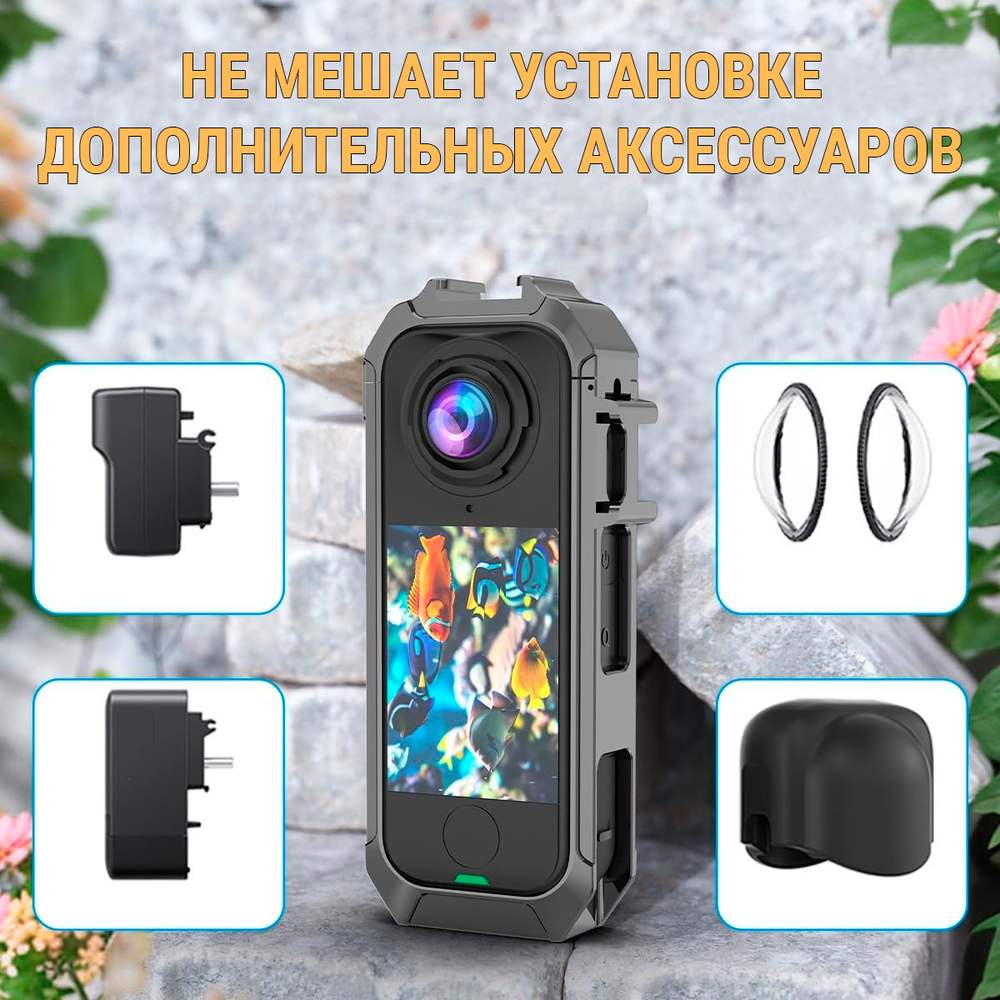 - Универсальные крепления: Рамка оснащена резьбой 1/4 дюйма, а также фирменным магнитным креплением Insta360.