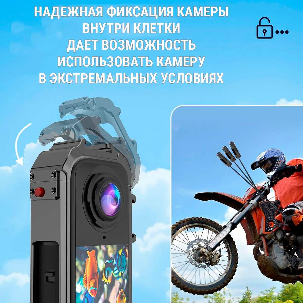 - Полный доступ к функционалу: Открытая конструкция клетки позволяет устанавливать защитные стекла, пользоваться экраном и кнопками камеры, а также портами устройства без необходимости снимать аксессуар.