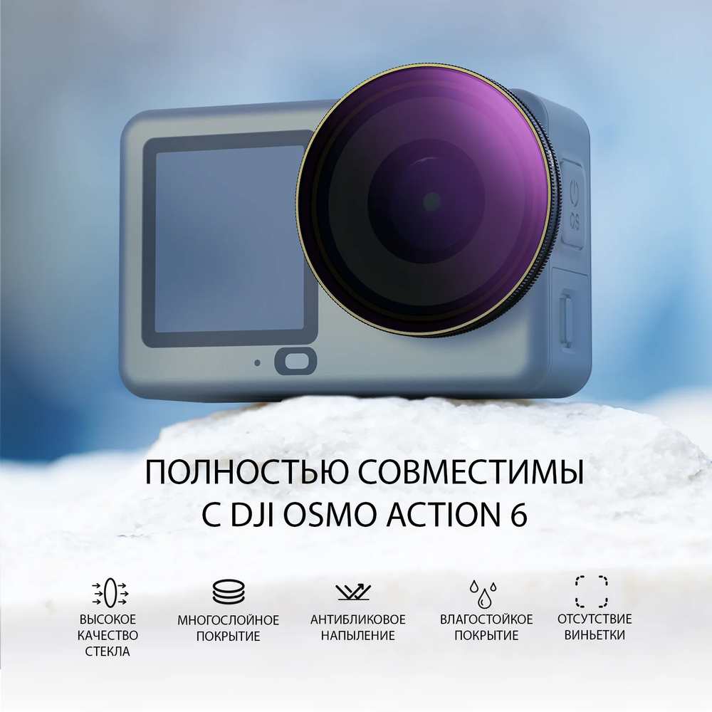Добавить эффект размытия движения или оптимизировать количество света, попадающего в объектив камеры DJI Osmo Action 6, можно с помощью набора фильтров Zarrumi FK5-D6. В комплект входят фильтры ND8, ND16, ND32 и ND64, которые обеспечивают различные уровни снижения или коррекции попадающего в объектив света. Эти фильтры позволяют легко создавать эффект размытия движения в ваших видео, при этом каждый фильтр покрыт водоотталкивающим и устойчивым к царапинам покрытием, чтобы видео и фото оставались четкими.