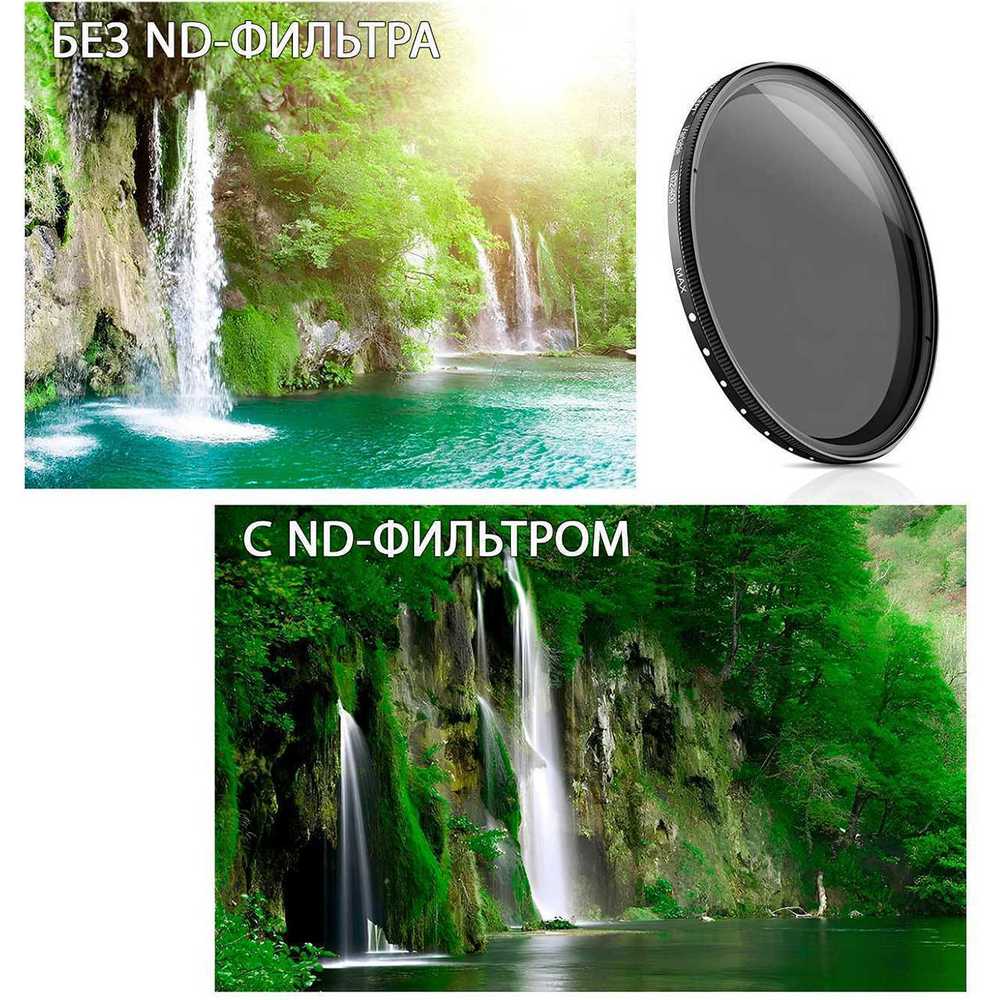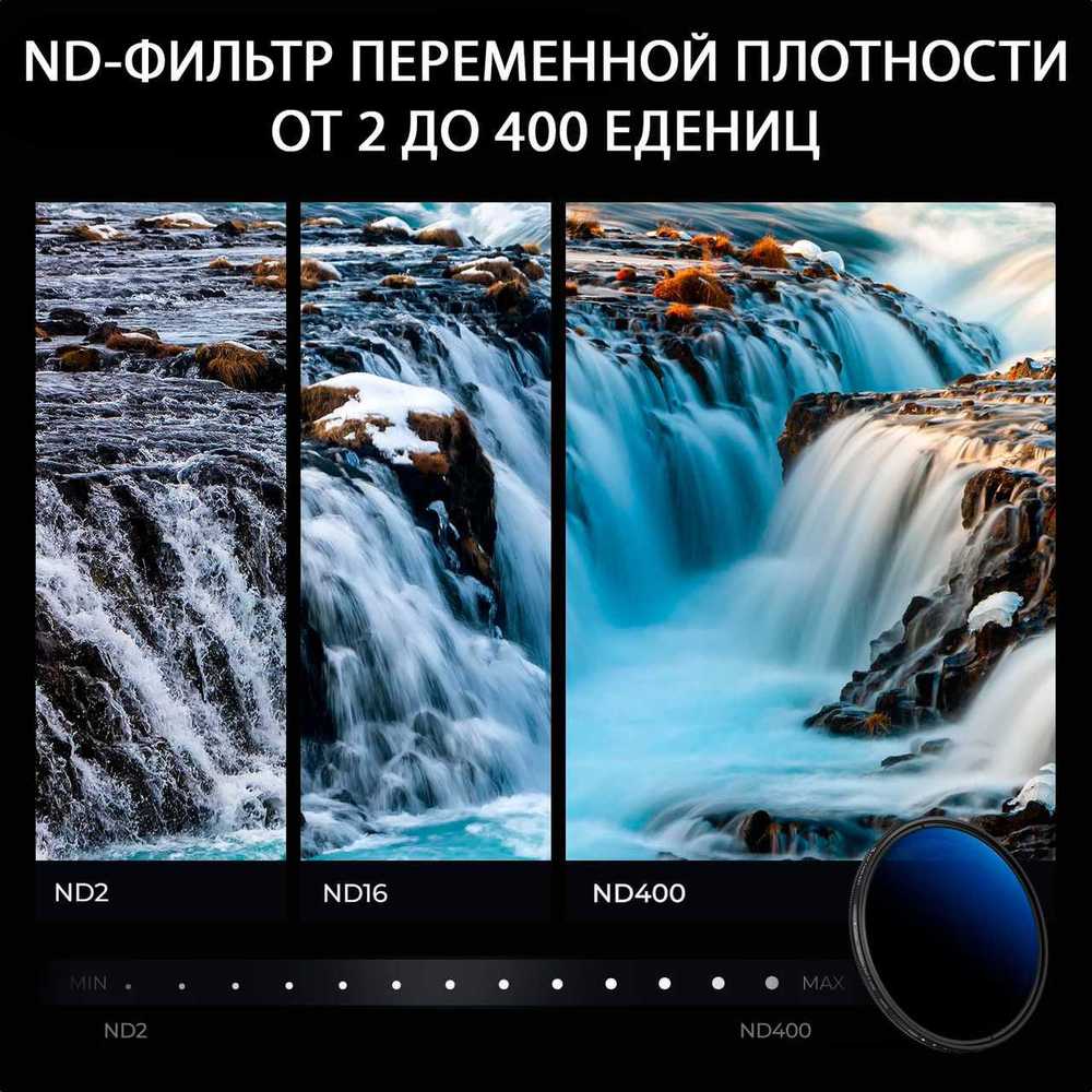 - Удобство использования — простая установка на резьбу объектива и плавная регулировка затемнения.