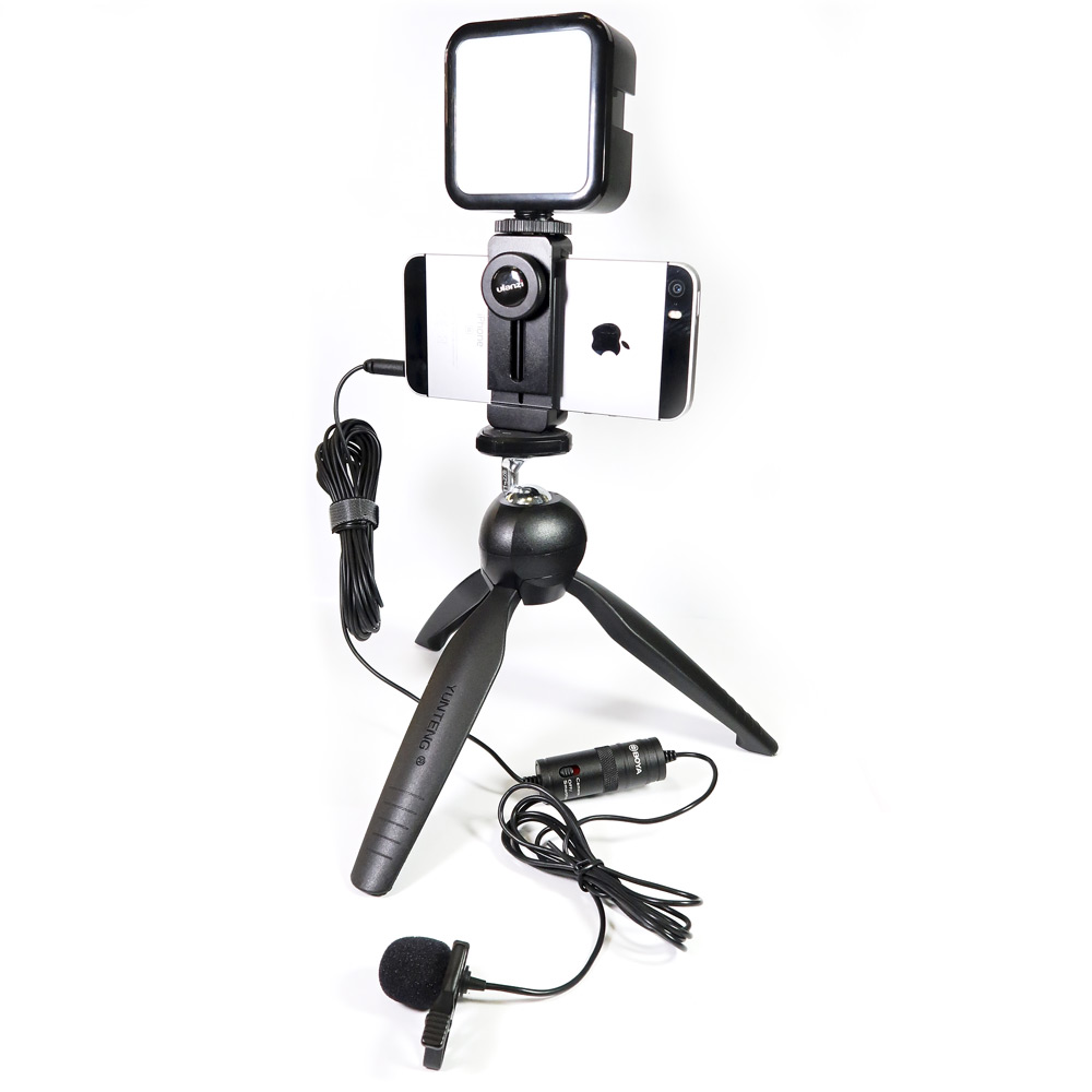 Всё и сразу: мини-штатив, свет, микрофон и держатели. Готовое решение для старта в блоге без лишних затрат.