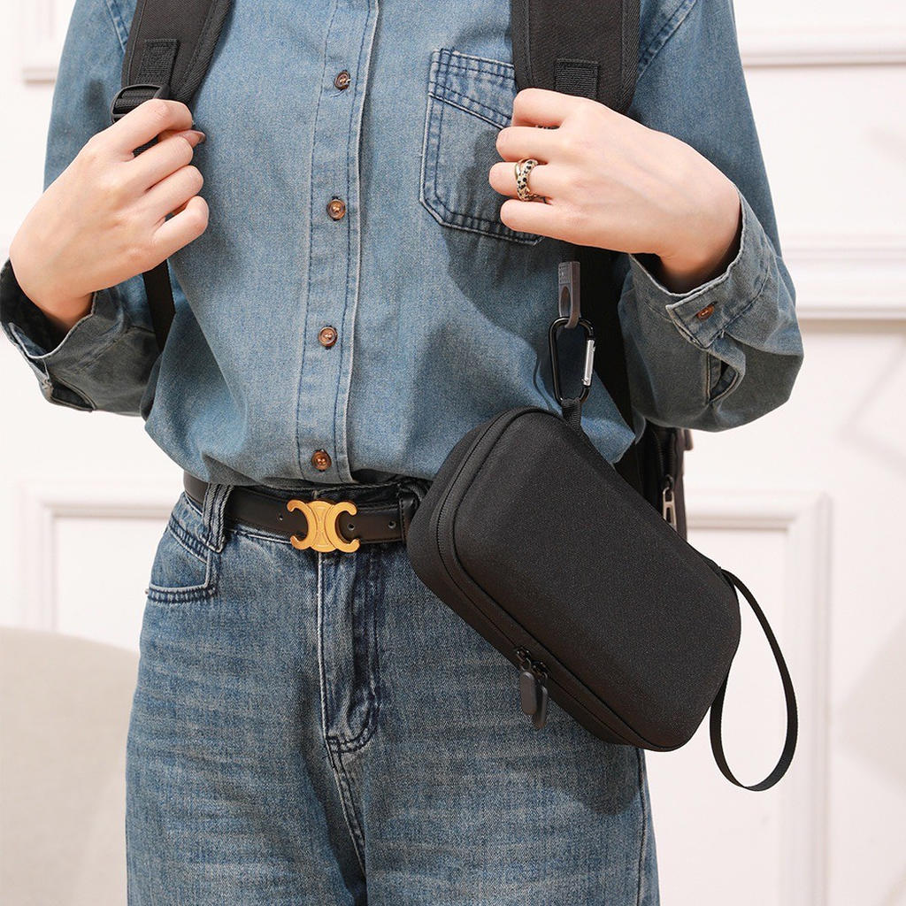 Кейс позволяет удобно разместить стабилизатор, крепление для смартфона и модуль трекинга. Внутренняя отформовка выполнена под форму стабилизатора и покрыта мягкой тканью, что предотвращает царапины и люфт при переноске. Для удобства предусмотрена петля для переноски, а также карабин, позволяющий закрепить кейс на рюкзаке или сумке. Два замка на молнии обеспечивают быстрый и надёжный доступ к содержимому.