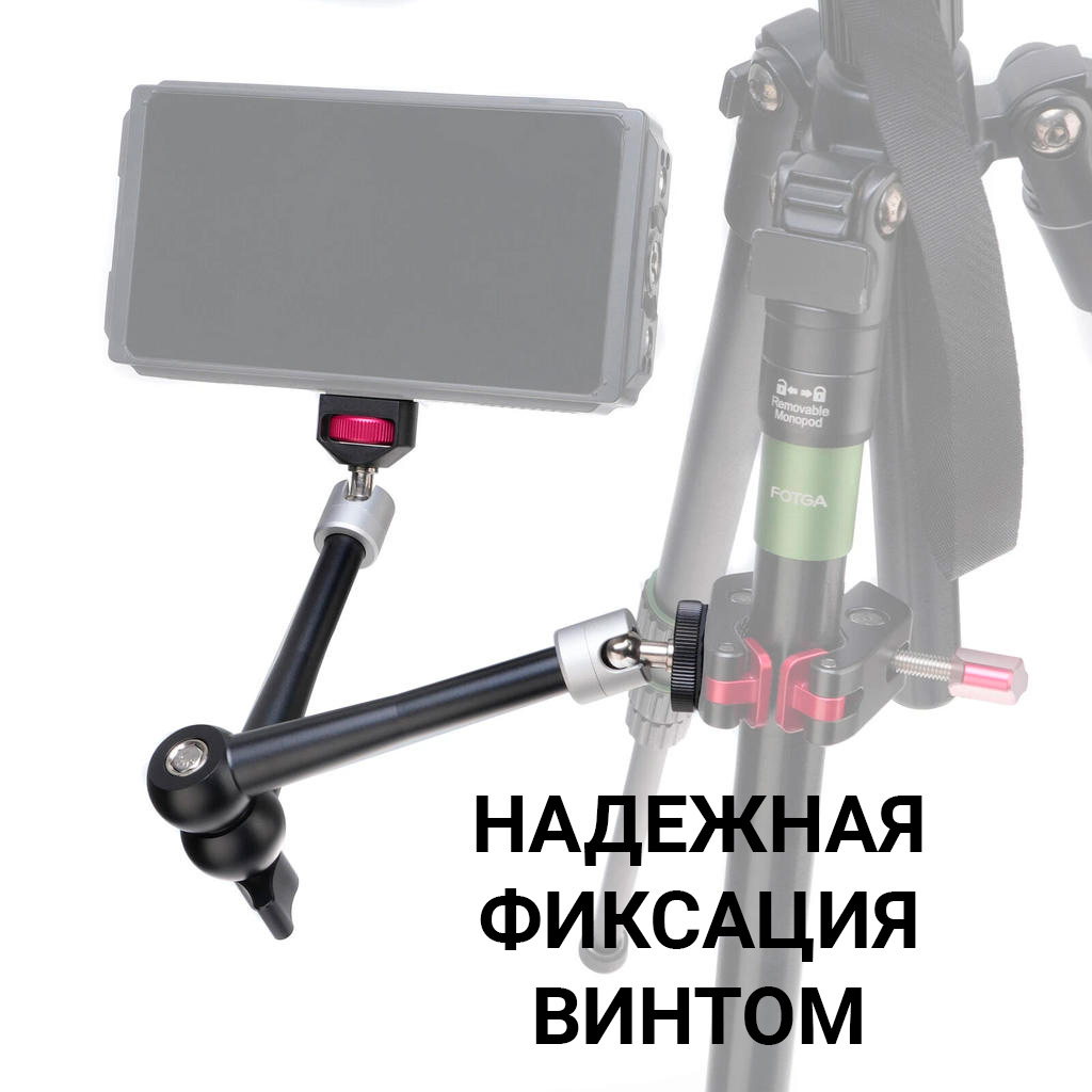 Благодаря металлическому шарнирному адаптеру Zarrumi Magic Arm 11 II можно удобно разместить дополнительное оборудование, фиксируемое через винт 1/4", например:
