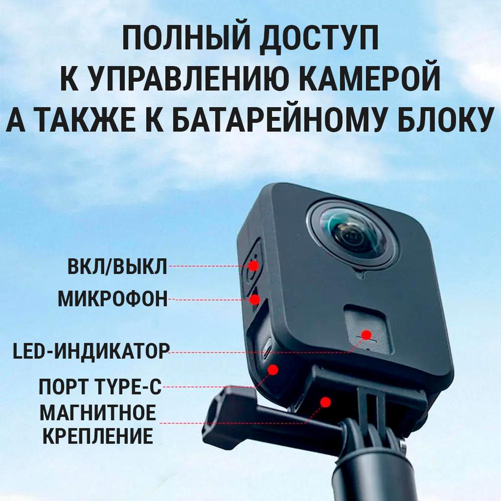 - Дизайн кейса предусматривает дублирование кнопок управления камерой, включая кнопку питания, а также вырез для удобного доступа к порту TYPE-C, что позволяет заряжать устройство или подключить внешние аксессуары.