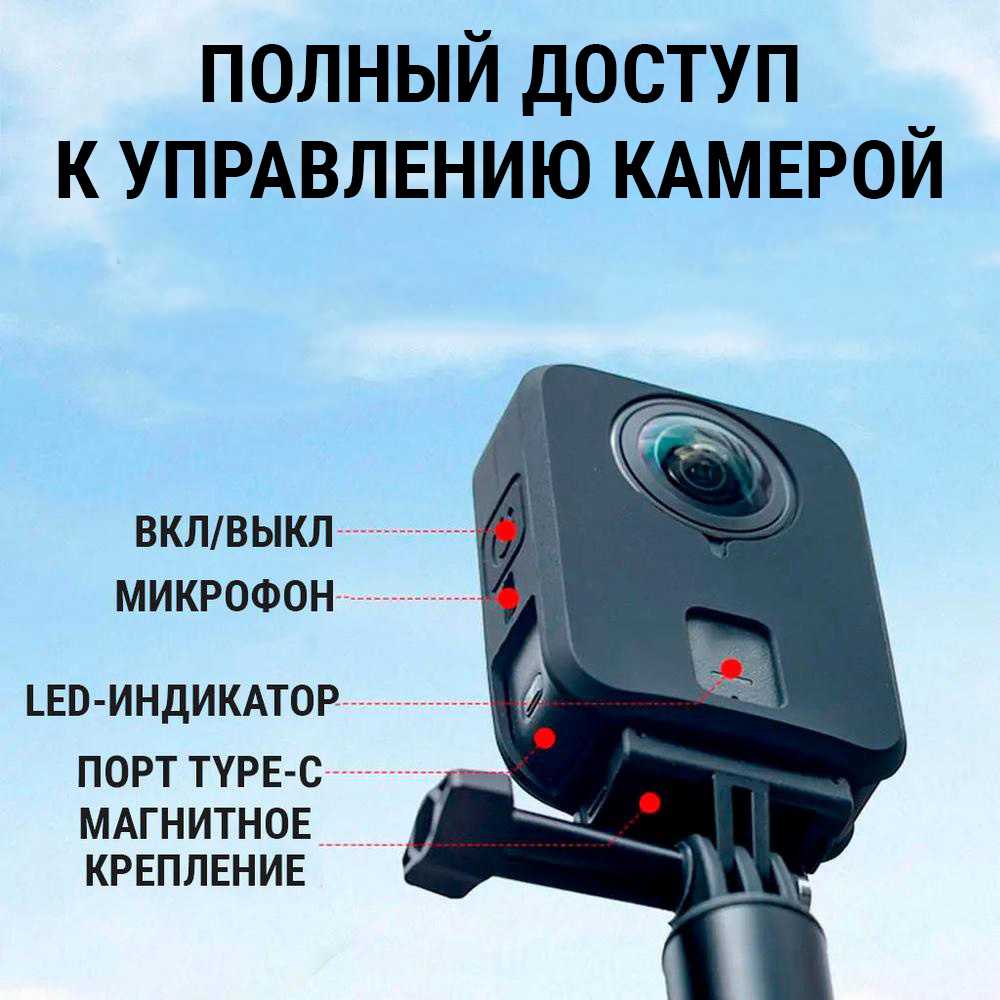 - Дизайн кейса предусматривает дублирование кнопок управления камерой, включая кнопку питания, а также вырез для удобного доступа к порту TYPE-C, что позволяет заряжать устройство или подключать внешние аксессуары.