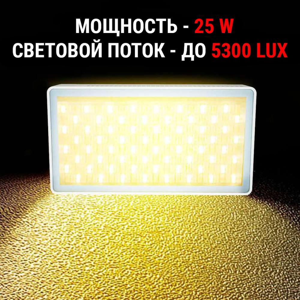 - Мощность лампы - 25W, а световой поток достигает 5300LUX, что помогает снимать в самых сложных условиях освещения.