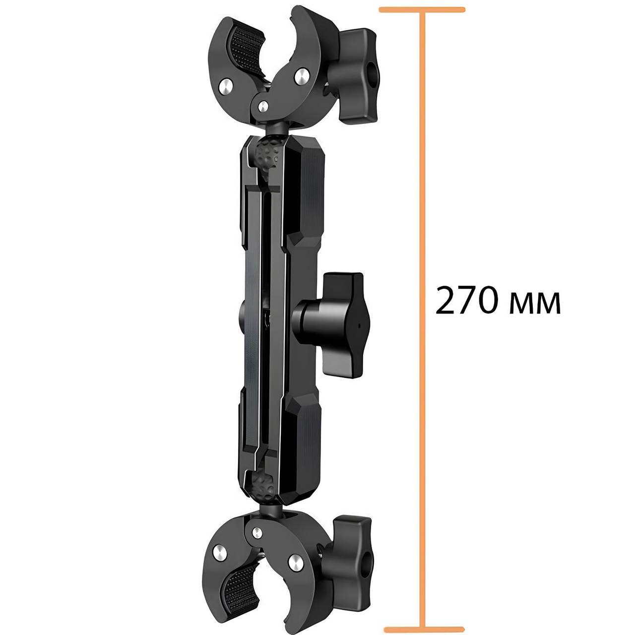 Zarrumi Double Claw Large — это компактный и универсальный крепёж для фиксации камер, света, моноподов и других аксессуаров в любых условиях. Идеально подходит для съёмки на мотоцикле, велосипеде, для блогинга, стриминга, а также установки оборудования на трубы, стойки, перила и рули.