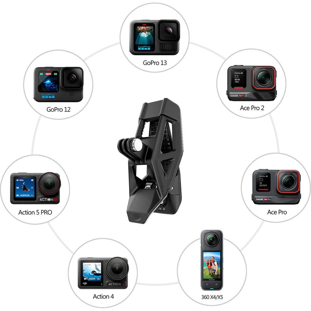- Универсальная совместимость — подходит для большинства популярных экшн‑камер (например, GoPro, Insta360, DJI и других), что делает его универсальным решением для вашей съемки.